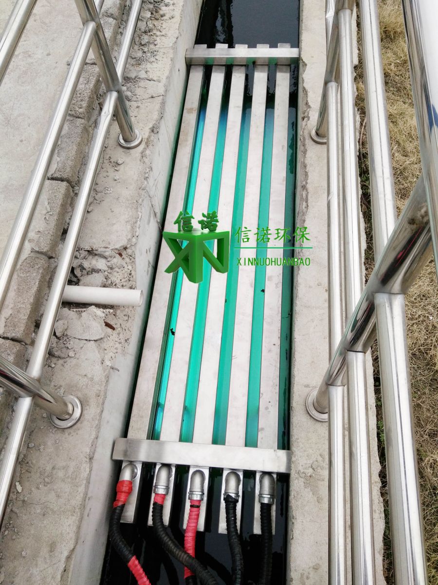 信諾明渠式紫外線系統(tǒng)消毒設(shè)備模塊安裝于開放式紫外消毒渠中,為了維修方便,配電柜及控制柜均安裝在水渠上方。紫外光燈管排架排列于明渠中,紫外燈管與水流方向一致平行排放!